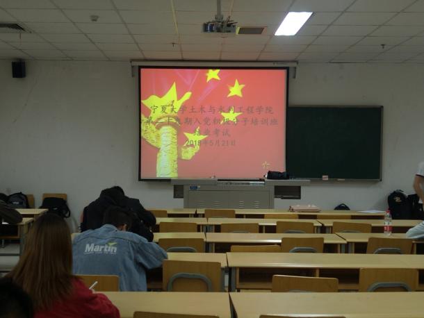 2018年5月21日晚,永利官网第二十九期入党积极分子党课结业考试在文萃校区二教106教室举行。共计60名入党积极分子参加此次考试。监考成员由部分学生党员担任。