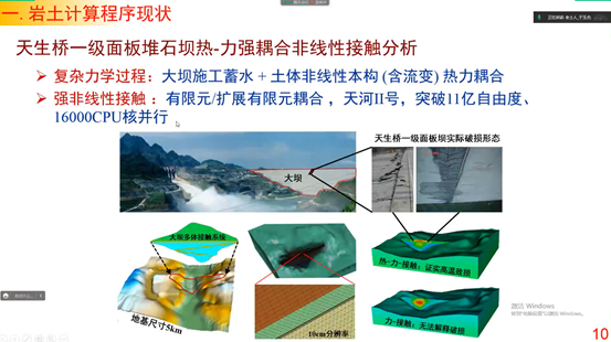 于玉贞教授首先以土石坝工程为例,介绍了数值计算在解决岩土工程重大科学问题中的关键作用,系统分析总结了岩土数值计算领域国内外软件发展现状,指出当前我国没有自主研发的岩土数值计算软件,过于依赖国外商业软件对于提升我国岩土工程科研自主性和创新性均有较大的影响;然后,于玉贞教授介绍了发展岩土计算软件的科学途径,提出岩土智能安全评价系统的发展框架;最后,结合几个工程实例介绍了当前团队开发的软件在岩土智能安全评价方面的典型应用。